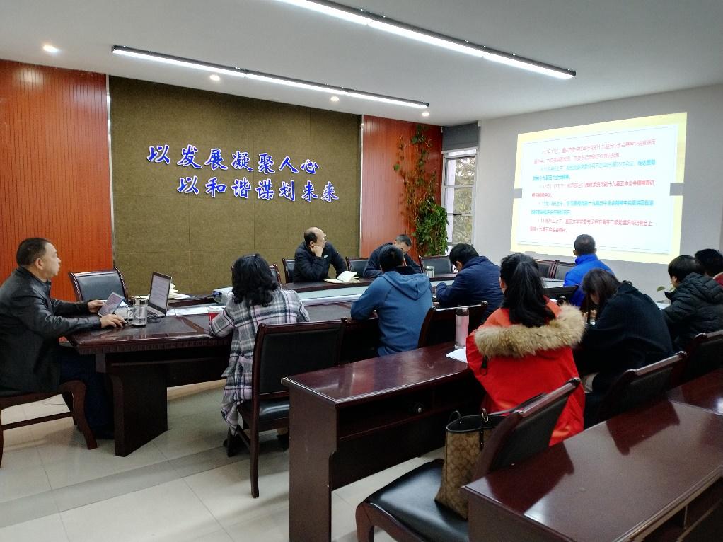 党委书记邱荣富主讲,学院全体党政领导班子成员、党委委员、纪委委员、各系(中心、室)主任、组织员、各党支部书记等参加会议。