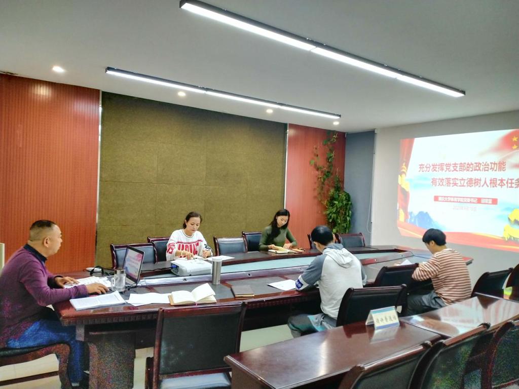 邱荣富书记首先给大家作了《充分发挥党支部的政治功能,有效落实立德树人根本任务》的报告,对学院本学期的党建工作进行了布置和强调。他从高校学院党组织建设应突出政治功能,以政治建设为统领搞好高校党支部建设,并分别针对高校教师党支部和学生党支部如何搞好党建工作进行了系统讲解。
