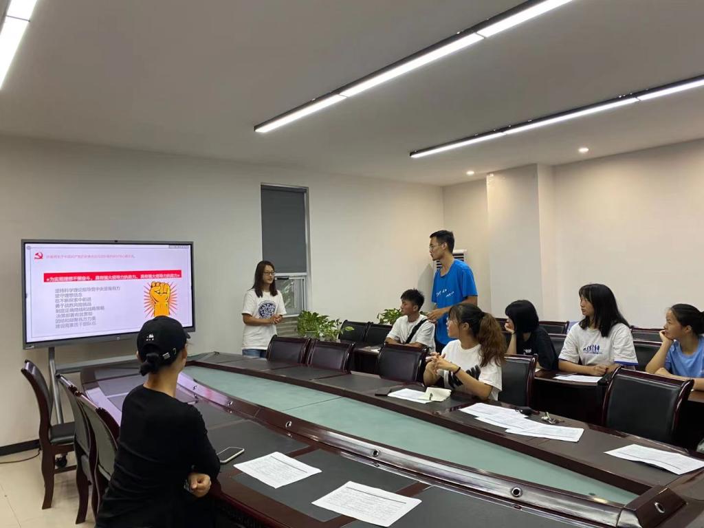 随后由梁诗琴同志组织大家根据前一部分的理论学习展开了相关的讨论。根据现场给出的一组关键词,大家相互之间展开了的积极的探讨,从近年来发生的疫情再到前不久的河南暴雨,大家从自己身边发生的点点滴滴的事情中真真切切的感受到了中国共产党为人民服务的决心与使命。