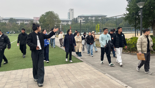 接着,两个支部共选出10名党员作为讲解员带领大家分别对东大门(虎溪地图、校史牌)、东大门广场 (历史甬道)、体育中心、信息科技大楼等10余处校园内主要建筑、文化地标进行游览并逐一讲解。在游览途中,双方同学互相介绍了自己的研究方向和运动专项,并互留了联系方式,在愉悦的活动氛围中逐渐加深了对彼此的了解,也为以后学院间的合作共赢打下了坚实的基础。